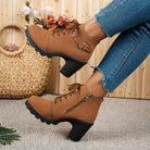 Turn heads wherever you go with the Aria Lace-Up Heel Boots, designed for women who love confidence and comfort in equal measure. With a sturdy block heel, scalloped sole, and supportive lace-up design, these boots blend durability with chic street style.