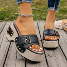 Step into statement style with Bravura. These platform slip-ons turn heads with gold-accented buckles, stud detailing, and a sculpted silhouette that elevates your outfit—and your confidence. Perfect for summer evenings, casual brunches, or anytime your look needs a little lift.