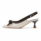 Designed with an elegant slingback strap and knotted toe detail, these sculpted kitten heels feature cushioned insoles for seamless comfort from day to evening.