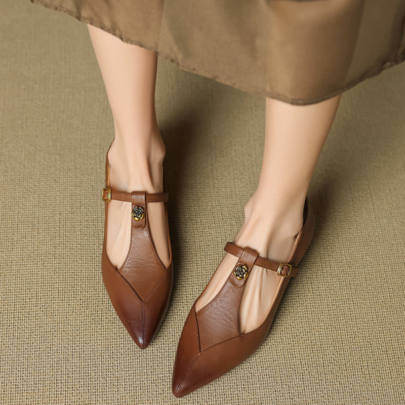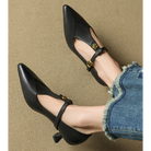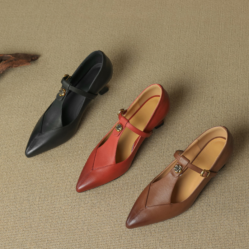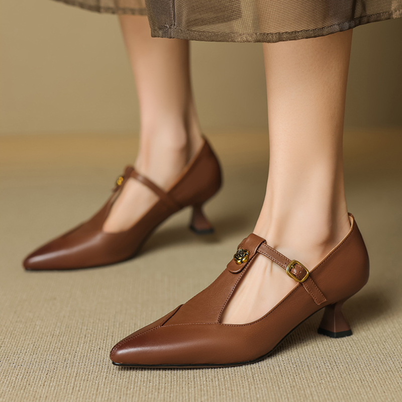 Crafted from vegan leather, the Clara Rosé Heels blend vintage elegance with modern sensibility. Featuring a sculpted kitten heel, adjustable gold buckle strap, and delicate rose charm add a touch of timeless femininity to any occasion.