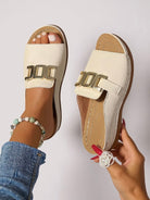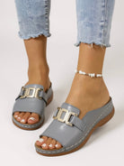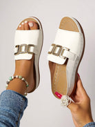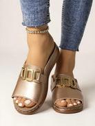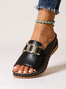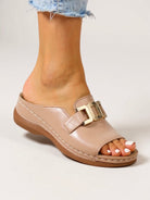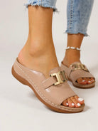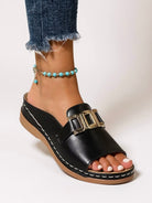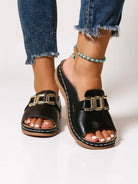 The Lena Gold-Buckle Slides combine everyday comfort with timeless elegance. Featuring a wide, supportive fit, soft insole, and striking gold hardware, these sandals make getting dressed — and getting out the door — feel effortless. They’re simple, comfortable, and quietly confident.