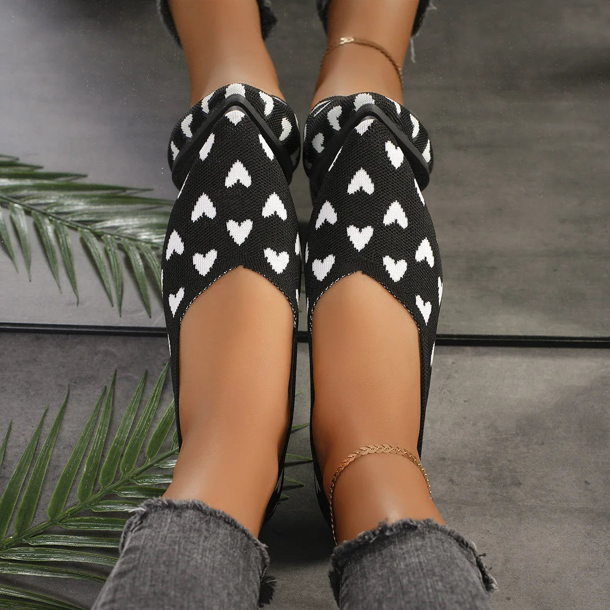 • Bold Heart-Print Design – Turns heads and lifts moods with every step.