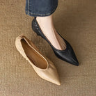 Designed with a softly gathered upper and striking gold heel, these slip-ons blend the grace of ballet with modern structure. The sculpted kitten heel adds a subtle lift, while the cushioned insole and pointed toe silhouette deliver effortless sophistication in every step.