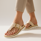 Designed for exceptional comfort without compromising on style, our Sienna Cushioned Sandals feature an ergonomic cushioned insole with shock-absorbing support. The unique gold-tone buckle detail, paired with a sleek vegan leather construction, creates a chic, timeless aesthetic.