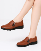 The subtly elevated sole adds a hint of lift, while the refined detailing and neat construction make them a versatile choice for pairing with everything from jeans to casual dresses. Whether you're running errands or meeting friends, these shoes bring effortless polish to any look.