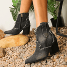 Crafted with a chic zip up ankle-length design these boots were made for walkin! With a comfortable insole and sturdy bottom heel you'll effortlessly enjoy two-stepping or just about anything else in these rodeo ready boots