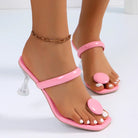 Crafted from glossy vegan leather and set on a flared crystal heel, these comfy slip-ons bring bold color and modern edge to your step. Designed for summer nights out or statement-making brunches, they deliver the kind of comfort that lets you dance past midnight.
