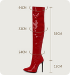 Striking and sophisticated, these knee-high boots feature a sleek pointed toe and elevated stiletto heel for a flattering, confident silhouette. The side zipper offers effortless wear, while the cushioned insole and soft lining provide ease with every step—ideal for evenings out or refined everyday styling.