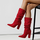 Crafted from Vegan leather with a sleek mid-calf silhouette, these boots offer a refined balance of durability and style. The sturdy block heel and tailored fit deliver all-day comfort, making them a versatile choice for both polished city looks and rugged weekend wear.